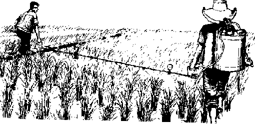 If large numbers of weeds emerge at the same time as the crop, a shallow working of the entire soil surface (including the rows themselves) with a spike-tooth (pegtooth) harrow may be the best solution if hand weeding labor is inadequate or too expensive. This method is best suited to crops planted at least 40-50 cm deep and can be used any time from two to three days after planting until the crop is 7.5-10 cm tall.
