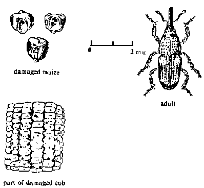 In parts of Africa and in other areas, birds like the bush fowl dig up and eat freshly-planted seeds, They often uproot young seedlings of maize and other cereals during the first several weeks of growth as well. Controls: Scarecrows are relatively ineffective, although noise-making devices may offer some control. It is often necessary to frighten away the birds from planted fields during their usual early morning and late afternoon feeding times for the first two or three weeks after planting. Farmers sometimes soak their seeds in highly toxic insecticides like Endrin and Dieldrin and plant them or use them as scattered bait. This is not only dangerous, but can lead to indiscriminate killing of wildlife. Some safer repellents are available such as Mesural 50 percent dust, which is mixed with maize before planting at the rate of 9-10 g/kg to repel blackbirds. Mesurol may injure maize seed under cool, wet conditions. Dusting seeds with Captan fungicide or soaking them in turpentine may provide a fair repellent effect.