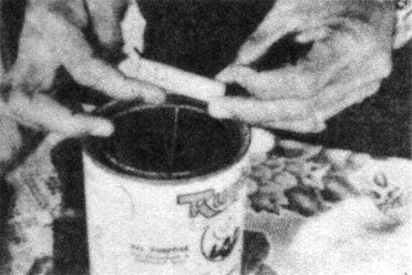 1. Roll a piece of heavy paper (this will serve as your pattern) around the.05 stick frame. Make a 1 cm hole in one end of the frame with it.a.05 nail, where you will later insert the - copper wire hook (Fig. 49).