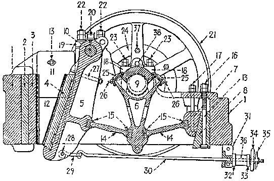 fixed plate B: eccentric pivot C: supporting-plate bearing.