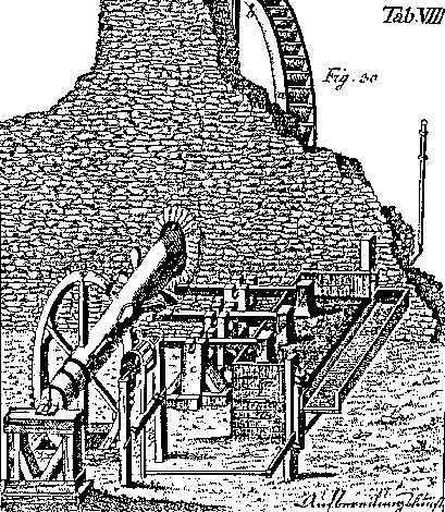 roller mill with animal-powered whim. Source: Schennen. Left: side view, Right: