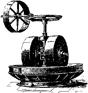 Very heavy stone or steel see-saw or rocker crushers are rolled, with the help of a lever arm, over the material to be ground, which is placed on a stone or steel surface. This method of crushing is comparable to that of roll crushers. Through a slight rotation at the dead-canter lever-arm position, the wheels can be repositioned on the grinding surface.