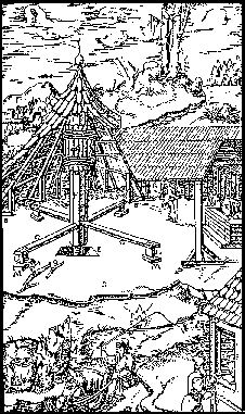 Animals harnessed to the outer end of a horizontal lever arm continuously walk in a circle, rotating the arm around a central axis, thereby either directly or indirectly (via gear mechanism) driving a machine. Numerous design and construction variations.