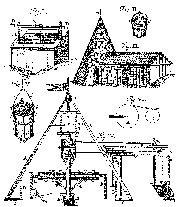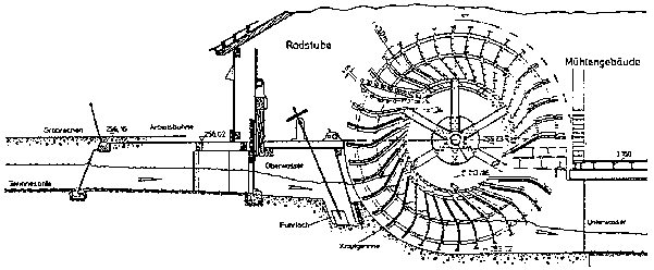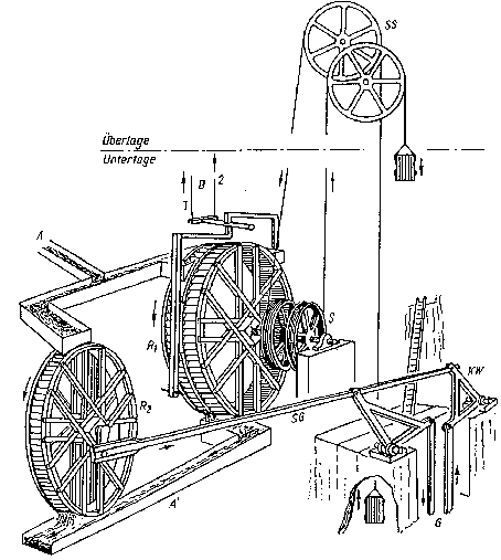 Harzer Wettersatz (Baader's blower), bucket chain-conveyor, water-bag haulage system, ball mills, roller mills, Chilean (edge) mills, buddies, concussion (bumping) tables, piston pumps |