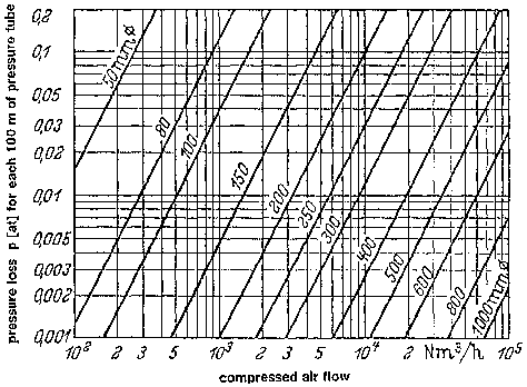 depends on drive-system (possibly hydromechanical) and cooling system (possibly water cooled). Important is the reduction of compressed-air losses due to leakage. In German coal mining these account for 35 % of the total compressed-air volume. These losses can be minimized especially by reducing the number of fittings and employing high-quality material. Besides the volumetric losses, pressure losses (pressure drop) also occur due to friction in the pipeline; the extent depends on pipe diameter, pipe surface conditions and particularly flow geometry. |