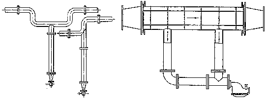 Following the compressed-air tank, and possibly before the pneumatic equipment, a water separator should be installed into the compressed-air network. This device removes the moisture in the air either by having the air flow repeatedly through a screen mesh, or repeatedly deflecting the air so that it strikes the separator walls; both methods result in the moisture condensing and precipitating out. The collected condensate is withdrawn from the collecting container either automatically or by hand. This reduces the risk of occurrence of water-hammer or icing in the equipment.
