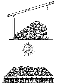 B) Drying in the sun directly on the ground, or, better still, on raised brick platforms which can be covered by plastic in case of rain.