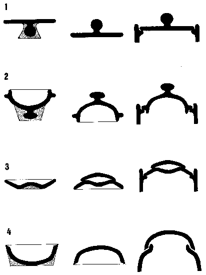 Also called posts, these are easily made with a hand extruder (Fig. 4.6.3-A). Plans are given here for typical cross sections, and the construction of dies for hollow forms is shown.