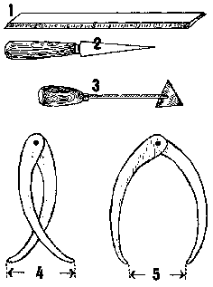 - for smoothing and cutting: carved wooden tools;- for cutting, smoothing, scraping: metal tools, which can be made from old hacksaw blades and heavy wire. Various shapes made from old plastic buckets, etc.