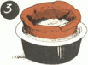 To make sure your cooking sufurias will stand straight on the jiko, put a sufuria on the liner just as if you were going to cook with it, and pour in some clean water. Push the liner into the foundation until the water in the sufuria is level.