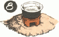 Baadaye chora mviringo kuzunguka ule mjengo ukitumia kijiti au kidole. Halafu weka viganja vya mkono sakafunitena, karibu sana na msitari uliochora, ili uweke alama nyengine. Halafu ondoa mjengo wa jiko la mabati.