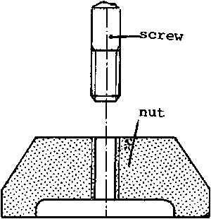When the nut component is thicker, it need not be threaded through, but only to a depth sufficient to accommodate the screw. As it is difficult to thread to a precise depth, it is preferable to thread the nut component to a depth slightly greater than the length of the screw. Before threading the nut component is, in any case, drilled through (figure VII.10).