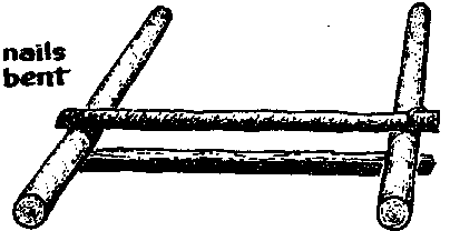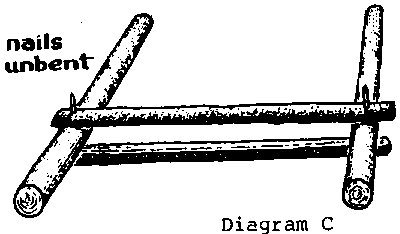 The four pieces of wood are then joined together using 6/½ cm nails as shown in Diagram C. The ends of the nails are bent using a hammer. Do this carefully so that the pieces of wood do not split.