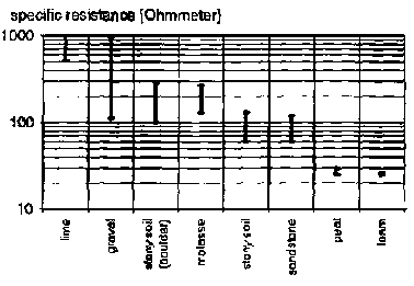 The specific resistance d of the soil is one of the key parameters for the resistance of an earth contact. It is a function of the chemical composition, the humidity and the temperature and may vary widely. The specific resistance is given in Ohm meter [Wm]. Extensive research in Switzerland has revealed the following relations: