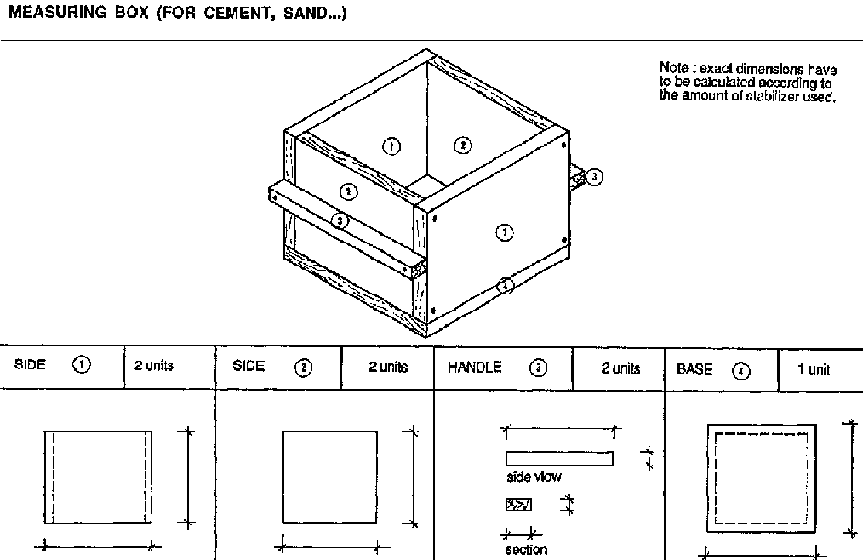 The weight of the cement is obtained, the volumes of earth and sand and the rate of stabilization having been decided.
