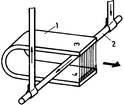 Fig. 5.25. shows the closed current paths in the metal surface. Because of the apparently irregular course taken by the current, these currents are called eddy currents. Eddy currents can be avoided to a great extent when fine slots are made into the metal surface as shown in Fig. 5.26. The pendulum of such a slotted metal plate will hardly be damped; the braking action and thus the eddy-current formation are cancelled to a great extent.