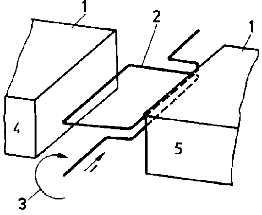 In planar conductors voltages are induced by magnetic flux variations in the same manner as in wires and coils. The induction currents associated with these induced voltages are high because the current paths in a planar conductor are closed in themselves and act as short-circuits (see Fig. 5.25.). An experiment sketched in Fig. 5.24. shows the action of such induced currents. A metal plate of copper (or of another electrically conductive material such as aluminium) is suspended in such a way that it is allowed to swing through a magnetic field kie a pendulum. In this manner, currents are induced which, according to the Lenz rule, built up magnetic fields of opposite direction and thus damp the motion. The pendulum will come to rest very quickly.