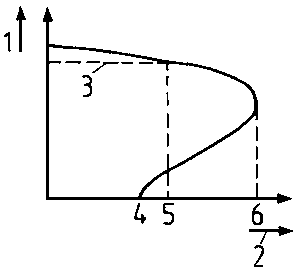1 Speed, 2 Torque, 3 Rated speed nn, 4 Starting torque Ma, 5 Rated torque Mn, 6 Breakdown torque MkThe initial torque Ma is the torque yielded by the motor in no-load operation. The breakdown torque Mk, is the greatest possible motor torque. If this torque is exceeded, the motor comes to a standstill.