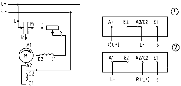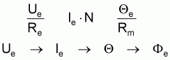 A voltage U0 is always generated in the rotor circuit irrespective of the type of direct current machine. The windings in the operating field yield an ohmic resistor, the internal resistor R1. Both values can feature in a duplicate circuit plan.