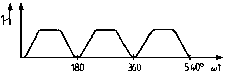 The commutator ensures that polarity of the carbon brushes remains constant at all times. The course of the rectified voltage is shown in Figure 85. We can perceive that the generated voltage still ranges between zero and a top value whilst always evidencing the same direction.