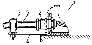 1 lamp casing, 2 trumpet-shaped entry, 3 tension relieving clip. 4 supply line, 5 screw with triangular heads