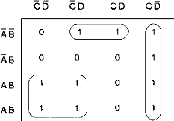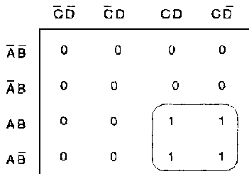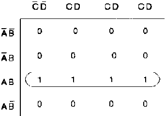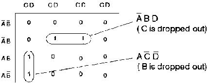 As you see in Fig. 4-4, only one variable goes from uncomplement to complement. Whenever this happens, you can eliminate the variable that changes form.