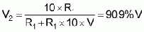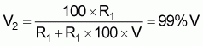 In order to get the highest, possible voltage (V2) let's try several values for R2.