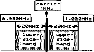 Both types of modulations have the effect, that there is special spectrum of frequency leaving the aerial. Beside the actual carrier-wave there are higher and lower frequencies. They are called the SIDEBANDS. The frequencies higher than the carrier-frequency are called UPPER SIDEBANDS the frequencies lower than the carrierfrequency
