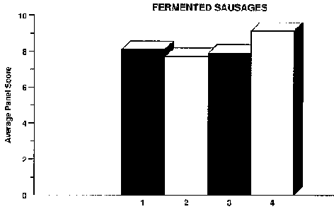 acceptability of fermented and beef-pork sausages. Average scores of three