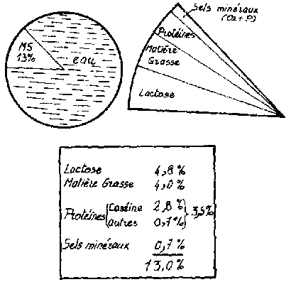 humaine. Dans 100 kg de lait, il y a 37 kg d'eau et 13 kg de matières sèches.