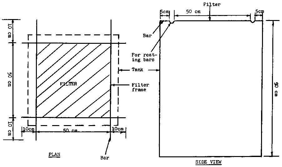 To remove small impurities, filtering may be done using an ordinary cloth stretched over a frame onto a tank of sufficient capacity (See figure III.2)