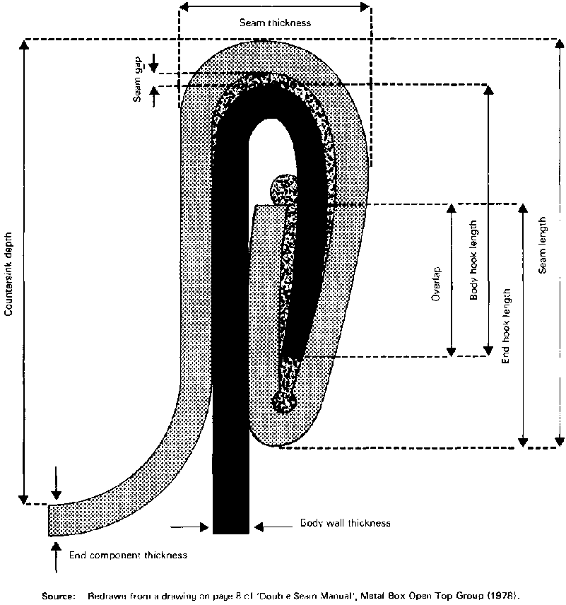 It is important that double seams are checked regularly both for visible faults and, by measurement for slackness, for the extent to which the body hook penetrates the sealing compound in the curl of the end-piece.