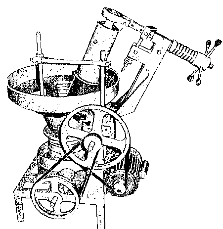Electrically-powered ghanis, known in India as 'power ghanis', are now replacing bullock-driven ghanis because bullocks are becoming increasingly costly to maintain. Either the pestle or the mortar is held stationary in power ghanis (see Figures 11 and 12) which are normally run in pairs so that one is always operating while the other is being discharged. About 100 kg seed/ day is the usual throughput.