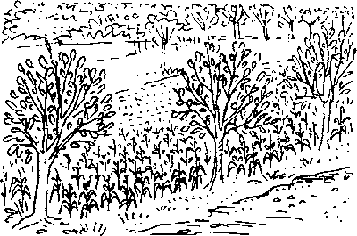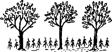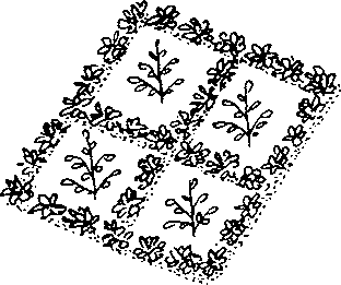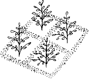 Seedlings may be planted or natural regenerated sprouts of desired species can be located and protected. Some simple protection measures for sprouts are shown on the opposite page. Protection of an entire field from grazing for some years will also allow the trees to regenerate naturally. Seedlings may also be planted. The spacing should be wider than in ordinary forestry plantations, maybe 10 x 10 metres.