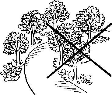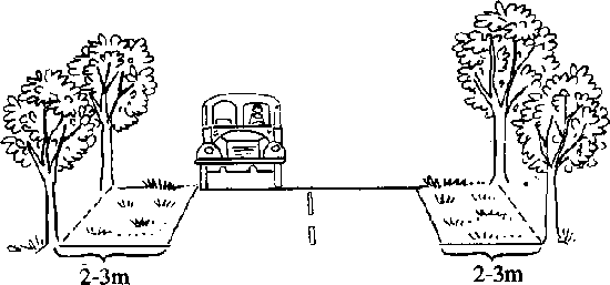 Trees along the road should be planted so that they leave room for the safe passage of people, animals and vehicles. Trees should not be planted on the inside of a curve where they might block the view of oncoming vehicles.