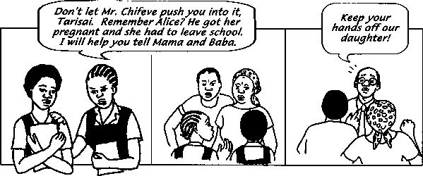 Sometimes girls feel frustrated because their dreams and hopes for their future may conflict with the beliefs in their community and family about what a woman should do. It is important to explain your dreams and hopes carefully to adults and to listen to their concerns also. |