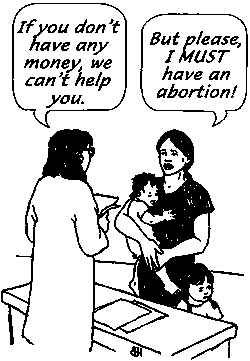 These reasons often make it especially difficult for women who are poor, or who are not familiar with the medical system, to get safe abortions. Unfortunately, in many places, the only women who can easily get a safe abortion are women who can afford to pay a private doctor. |