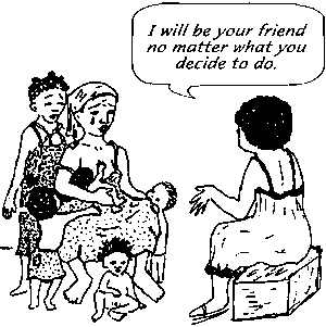 Treat women who need your help with kindness Many women who seek help after abortion are refused treatment or treated very badly. Some are made to feel ashamed or are given no care as punishment for what they have done. Whatever your own beliefs, try not to judge women who have had an abortion, but rather care for them with compassion. Many of us could have an unwanted pregnancy at some time in our lives. Treat others as you would want yourself or your daughter to be treated. |