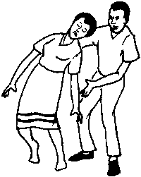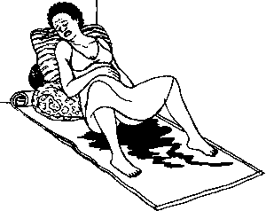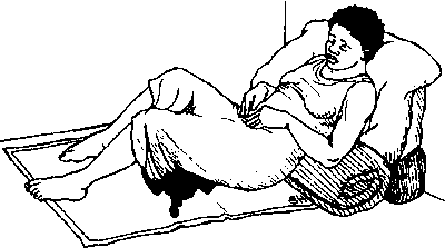 · Lay her on her side with her head low, tilted back and to one side, and her feet high.