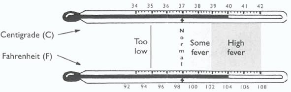 If you have a thermometer, you can take a persons temperature in the mouth, armpit, or rectum. A persons temperature is normally cooler in the armpit, warmer in the mouth, and warmest in the rectum. There are 2 kinds of thermometer scales. Either can be used to measure a persons temperature. Here is how they compare:
