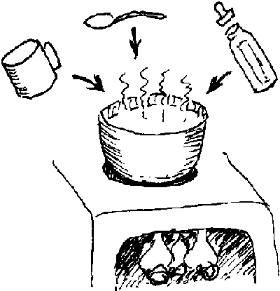 Where water may be contaminated, an important part of the prevention of diarrhea is to boil or filter the water used for drinking or for preparing foods. This is especially important for babies. Babies' bottles and eating utensils should also be boiled. If regular boiling of bottles is not possible, it is safer to use a cup and spoon. Washing hands with soap and water after a bowel movement (shifting) and before eating or handling foods is also important.