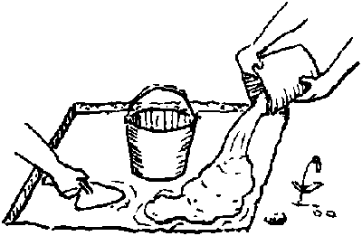1. Dig a shallow pit, about 1 meter square and 7 cm. deep. Be sure the bottom of the pit is level and smooth.