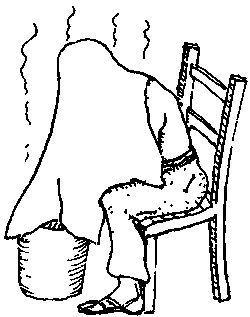 · If the person has trouble coughing up sticky phlegm, have him breathe hot water vapors and then help him with postural drainage.