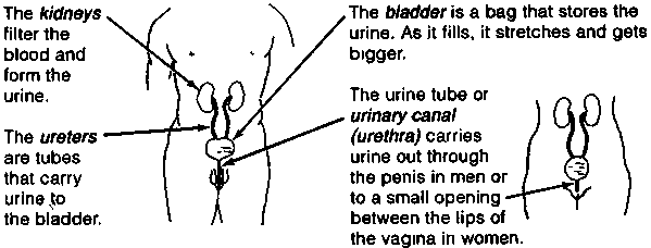Note: A woman's urinary tube is much shorter than a man's.