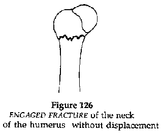Diagnosis Acute pain, reduced shoulder movement, swelling, large brachio-cephalic bruise, and the arm internally rotated (pathognomonic of this fracture).