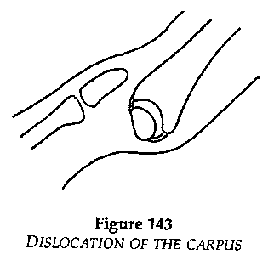 Pain, reduced movement of the wrist. Characteristic "bent fork" deformity of the wrist (Figure 138).