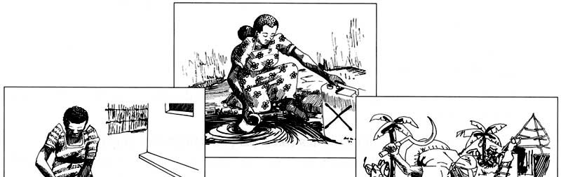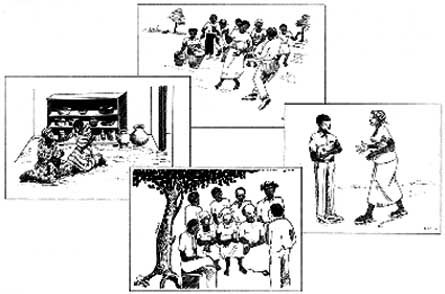 8. Si le groupe n'a pas présenté de problèmes en rapport avec l'eau et l'assainissement, essayez de répéter l'activité en utilisant un jeu d'illustrations moins générales, plus directement en rapport avec les questions de santé et d'assainissement. Jouez votre rôle d'animateur comme précédemment.