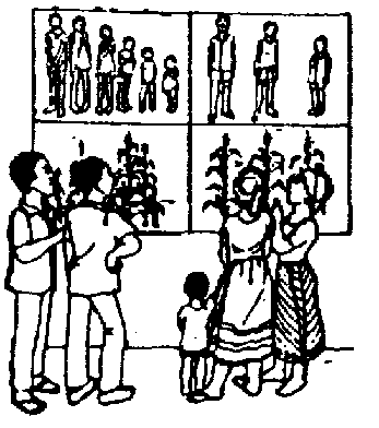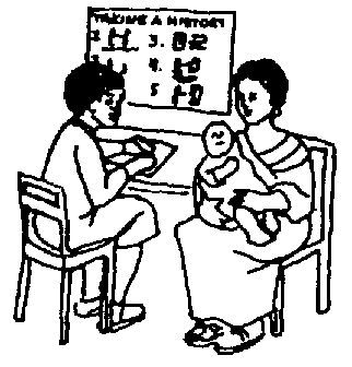 David, a health volunteer, talked with the village health committee about the health needs of the community. The committee members said that nearly everyone in the village wanted a health post because the nearest post was a four hours walk away. They insisted that if they could get the money to buy supplies, the villagers would provide the labor to build the health post. David promised to help. He went to the Ministry of Public Works and found the section that gives loans for village construction projects, de got the request forms for the loan and helped the health committee fill them out. Then he returned Jo the ministry and collected the loan for the committee.