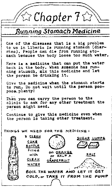 · As mentioned above, WHO runs training courses for national diarrhoeal disease control programme managers. and supports and encourages proposals for field and operational research that will lead to more information about aspects of diarrhoeal diseases in the community.· The Ross Institute will shortly be publishing two wall charts (one aimed at senior and the other at middle level health staff) which give 'at a glance information about the causes of diarrhoea, therapy, transmission routes, epidemiology and control measures etc. We will include more details about the charts in Diarrhoea Dialogue 10.