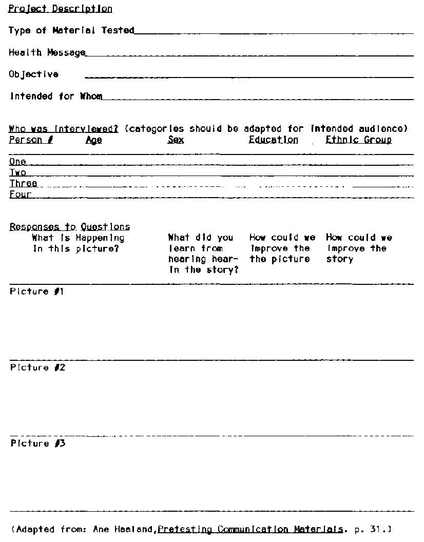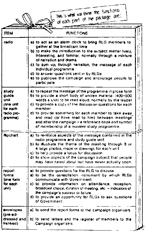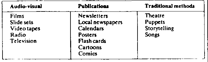 People need to know whom they can contact both within their own country and outside, if necessary, either to obtain information or to develop their own materials. Interest must be stimulated at a central level so that requests from other pans of the country for help in developing materials can be responded to